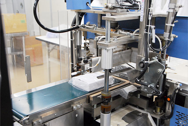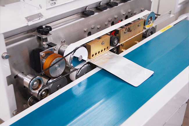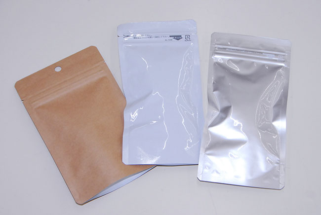 アルミフィルム・透明フィルム・印刷フィルム・の三包充填が可能です。